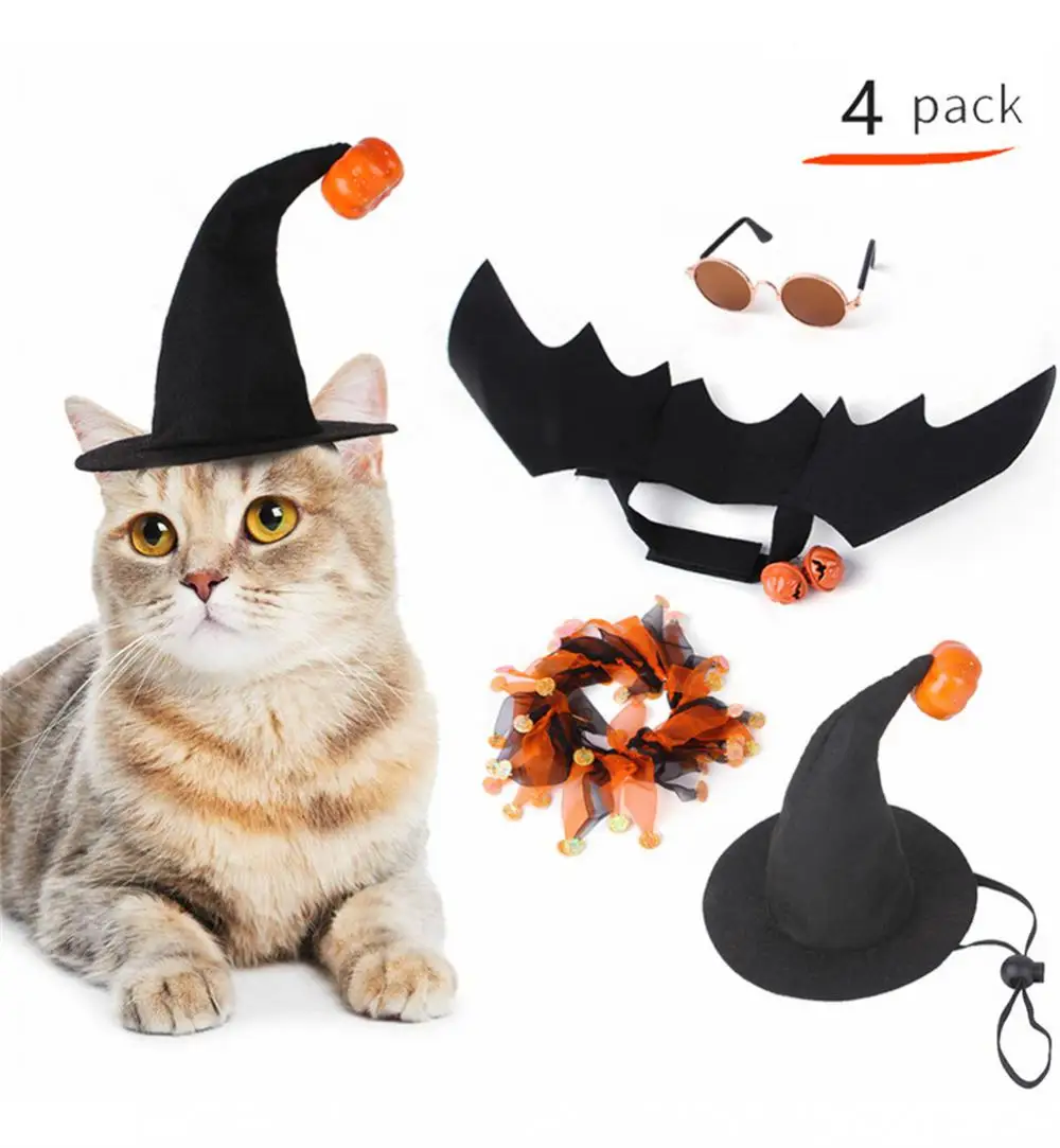4pcs set Cute Halloween Pet Costume Cat Vampire Bat Cosplay Kitten