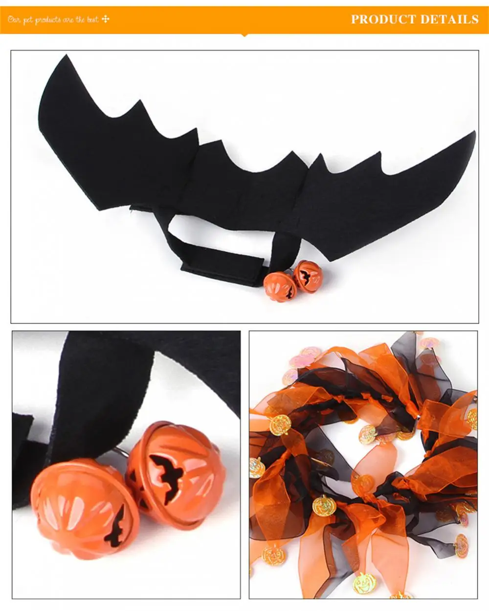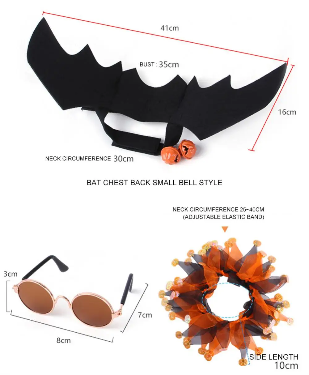 【Adorable design】: The bell creating crisp and interesting sounds, hat with spider and pumpkin patterns, adding a more festive atmosphere, and then putting on the bat shaped , making your pet more attractive and energetic in the crowd;