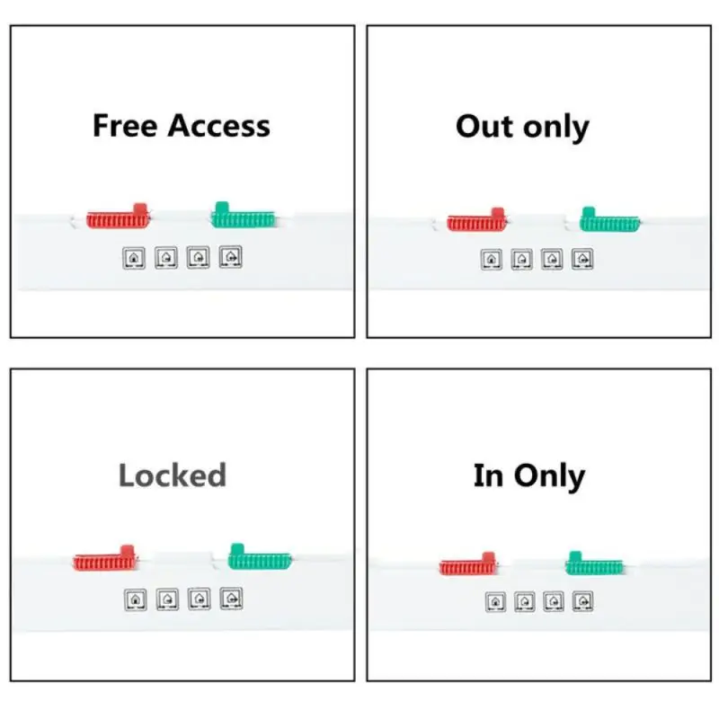 3.Turn Red and Green switches to left side, pet is allowed to exit house but prevent from entering house.